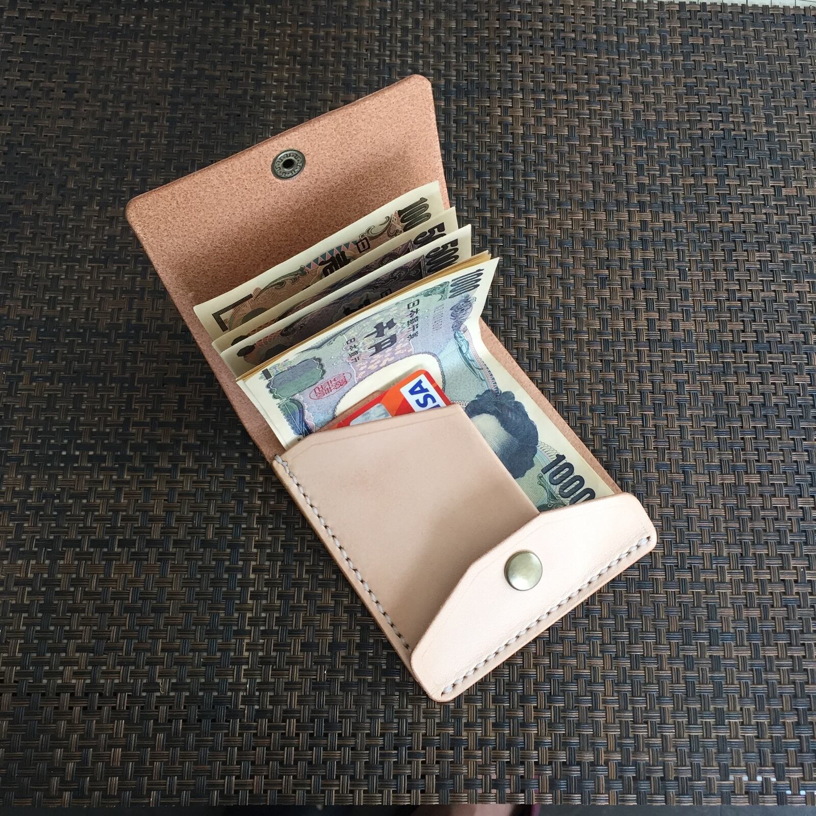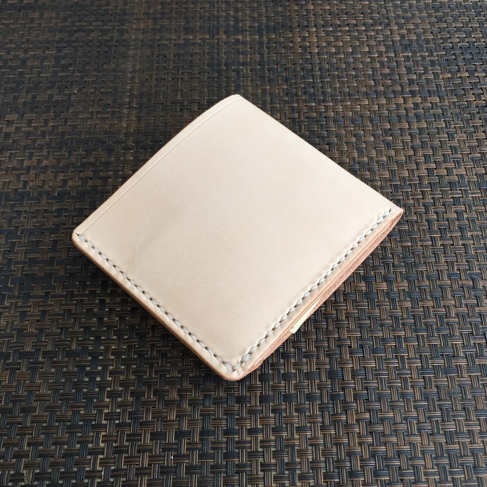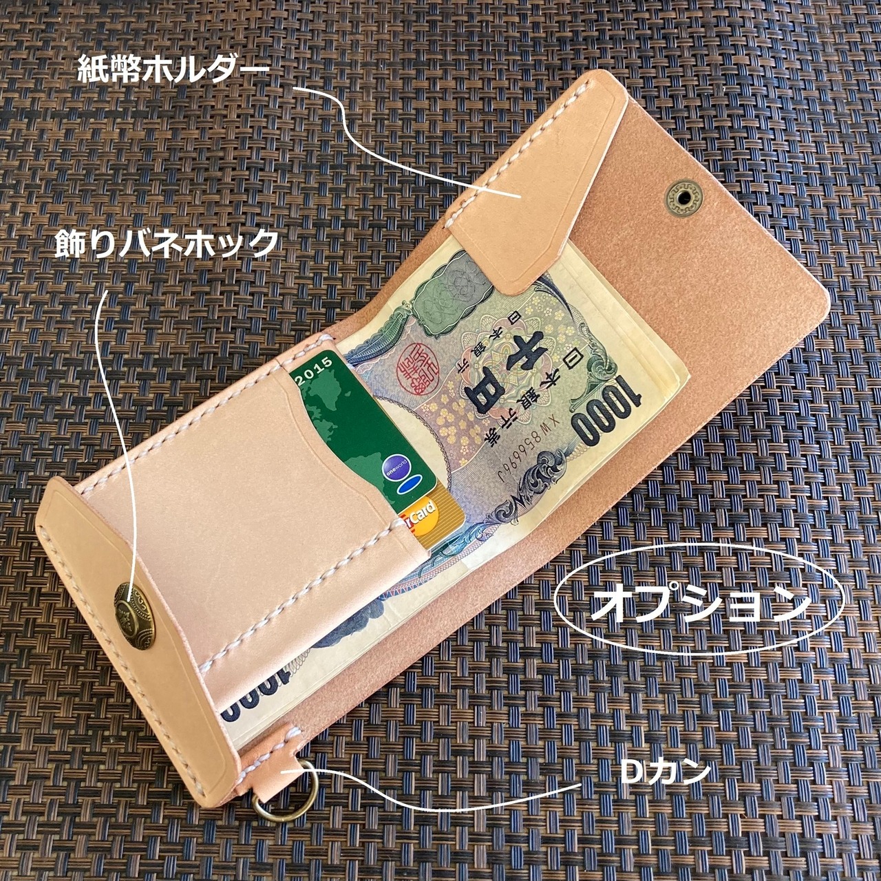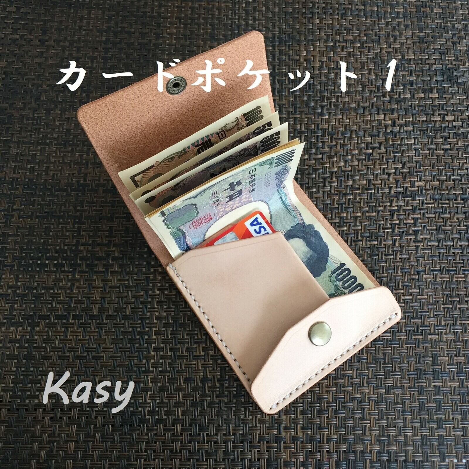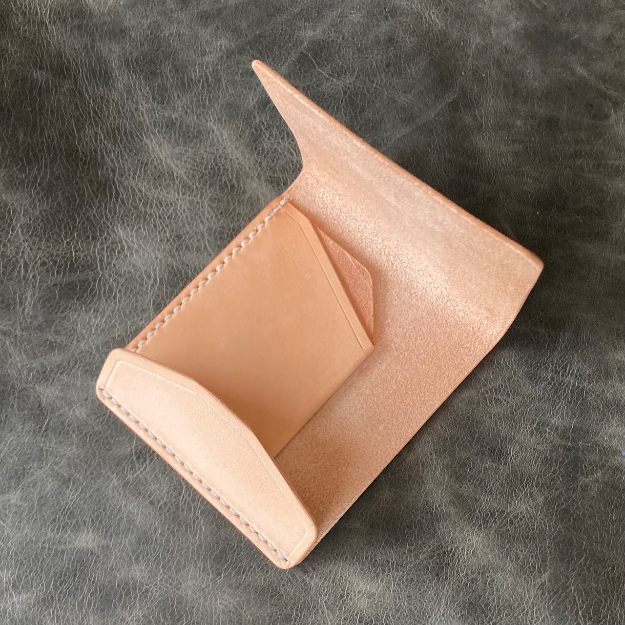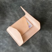「カードは一枚でよい!」というリクエストにおこたえして、カードポケットが一つの薄型シンプル札ばさみを作りました。カードは、max2枚重ねて入ります。
